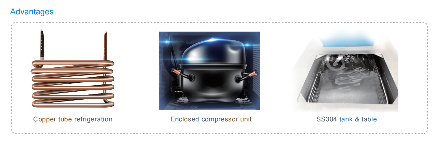 SS304 table and inner tank, the refrigeration coil has added positioning and surface